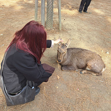 奈良公園に生息するシカ(国の天然記念物)とふれあう