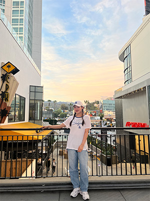 授業以外でも英語力とコミュニケーションへの理解を深めるため、経験を積極的に重ねました。2年次で参加した海外インターンシップ(インターン)も大切な思い出です。大学の国際センターが主催するプログラムで、私はロサンゼルスのNPOが運営するフードバンクで約1か月運営サポートを行いました。食材の仕分けや利用者への配布作業を通じ、サポートメンバーやフードバンクの利用者など、さまざまな文化背景を持つ人々と出会いました。その中で「日本へ旅行してみたい」という方に「ダイレクトに日本を感じたいなら、やはり浅草がおすすめ」とお伝えして喜ばれたことがあります。相手の笑顔を見たときはとても嬉しく、日本の魅力をもっと上手に伝えたいという思いが芽生えました。