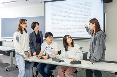 高い水準と幅広い教育内容を誇る「英語の青山」の伝統を体現する英米文学科では、「イギリス文学・文化」「アメリカ文学・文化」「グローバル文学・文化」「英語学」「コミュニケーション」「英語教育学」の6コースが開講されています。3年次のコース選択に向けて1・2年次では専門基礎科目を偏りなく学び、英語力を磨きます。卒業生は語学力と豊富な知識を生かし、多方面で高い評価を受けています。