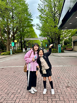 来日した家族・親戚に青山キャンパスを案内した際のいとことの一枚