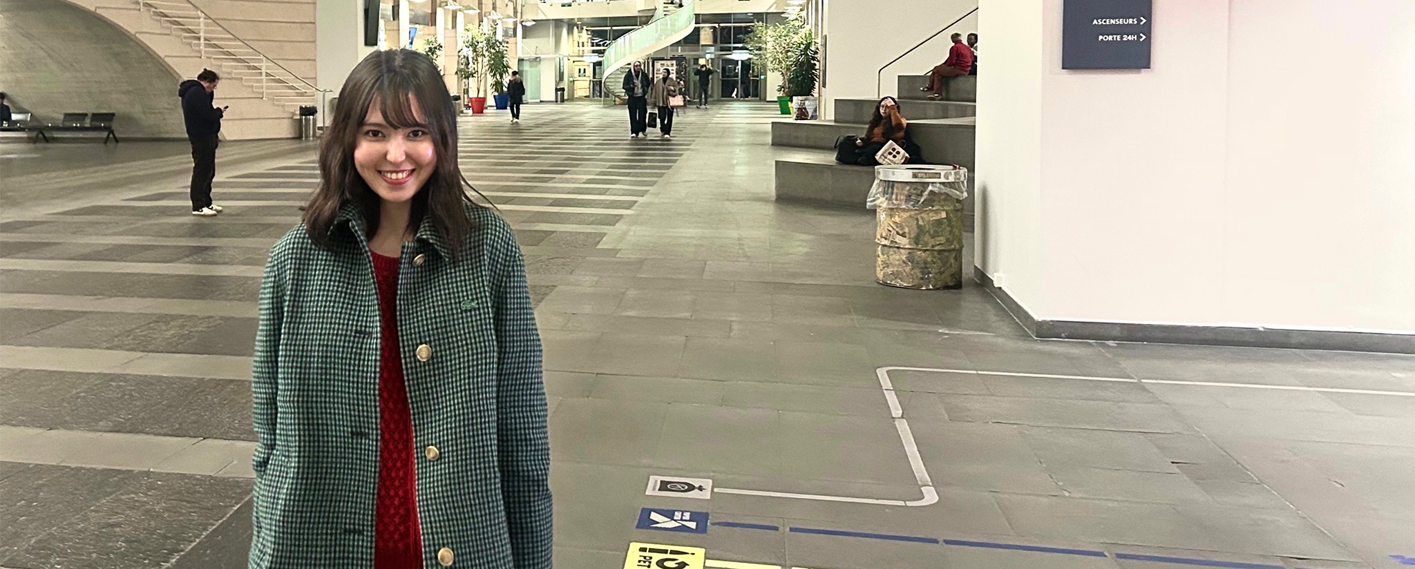 ジュネーブ大学では国際法や国際関係の授業を履修し、先輩の紹介で国連フォーラムのボランティアに参加する機会を得ました。そこで、インフォメーションデスクも担当しましたが、フランス語話者の参加者に、十分な道案内ができず、心苦しさを覚えたことが、フランス語学習への強いモチベーションにつながりました。そして、また国際会議のボランティアをしたいという意欲が湧きました。飛び込んでみて経験した学び、行動の連鎖が、私の道を形づくっています。