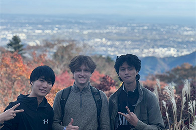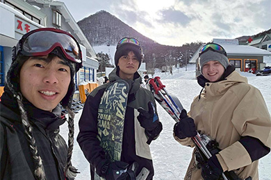 Learning to ski together with my friends was the best experience. My friend Naufal from GSC (an exchange student from Gadjah Mada University in Indonesia, center in the photo) and his tutor, Naoya Obara, a student in the College of Science and Engineering (left in the photo).